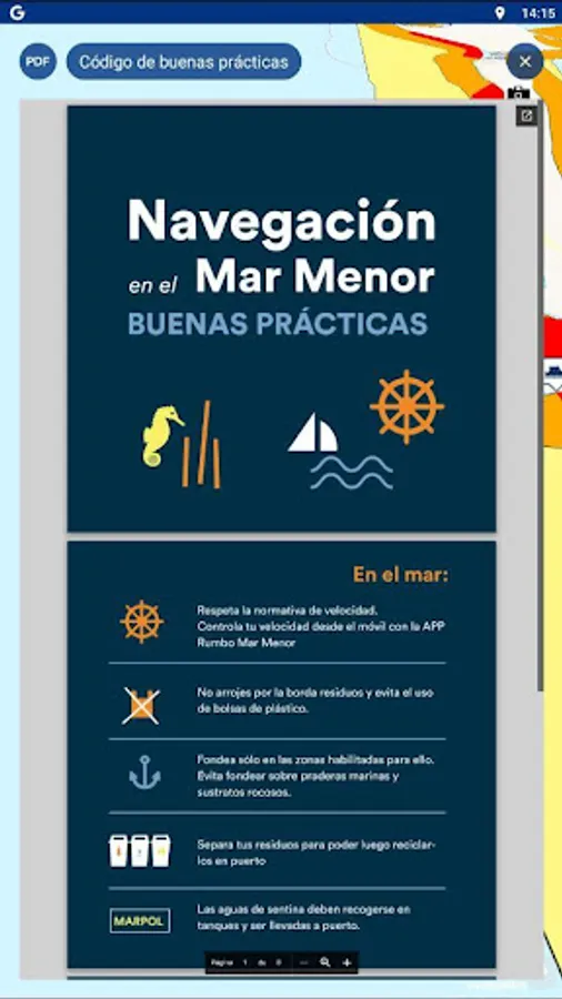 With Rumbo Mar Menor you will be able to know the maximum navigation speeds in the different areas of the lagoon, the allowed anchoring places, and the Protected Natural Spaces. In addition, you will be able to consult a wide catalog of photographs.