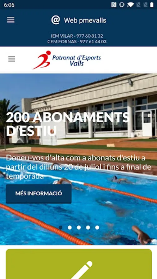 This application allows easy access to web information and online platform Patronat d'Esports reserves Valls.