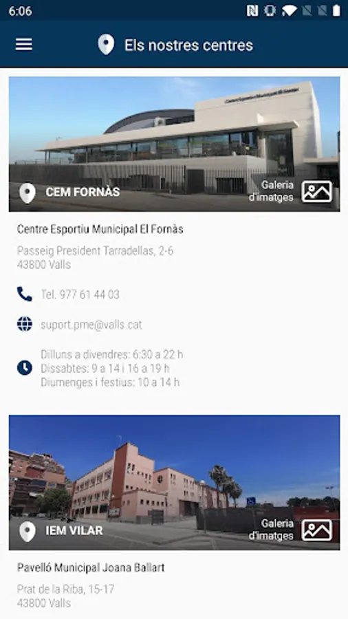 The tool offers citizens Valls in one click all sports services offered by the Patronat d'Esports de Valls during the year, and various information about sports in our city; and it offers the option to users and subscribers to reserve their activities and services conveniently online.