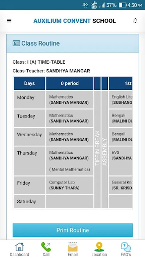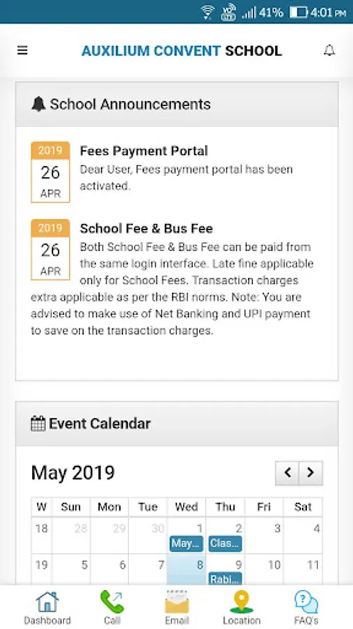 Auxilium Convent School, Siliguri App enables a one tap access to the following:
