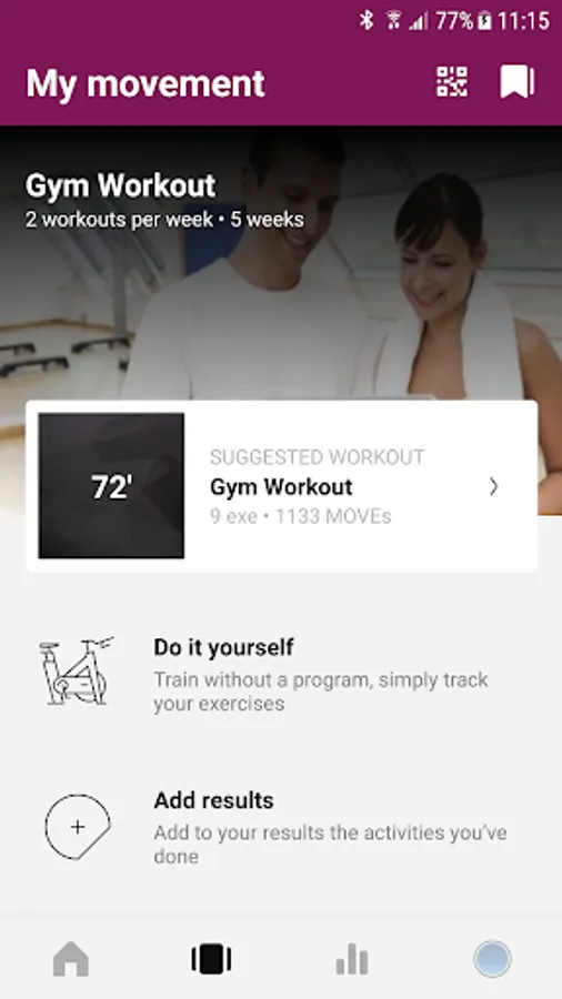 MY MOVEMENT: What you’ve chosen to do: here you will find your programme, classes you’ve booked, chal-lenges you’ve joined and all the other activities you’ve chosen to do at your facility