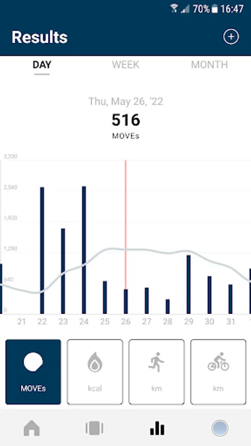 RESULTS: Check your results and monitor your progress throughout your fitness journey. Track your daily activity level using the MOVEs point system. Collect MOVEs every time you train and get more active every day.