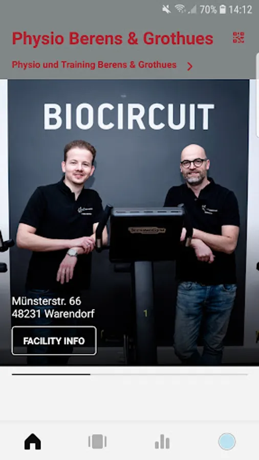 Durch die Verwendung der Physio und Training – Berens & Grothues Trainings-App wird dein Besuch in deiner Praxis zum Erlebnis. Alle Trainingsgeräte synchronisieren sich automatisch mit deiner App. Deine Trainingsergebnisse werden somit automatisch auf deinem persönlichem Mywellness Account gespeichert.