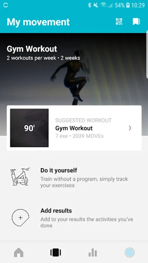 - MY MOVEMENT: here you will find what you have decided to do in your free time, your personalized program, what you train in padel, swimming or directed, the reminders, the challenges in which you participate and all the other activities that you have programmed.