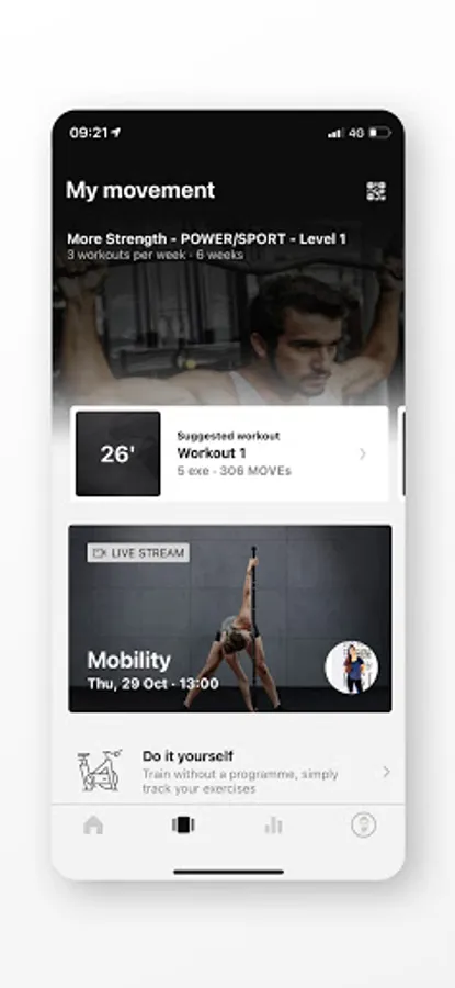 - MY MOVEMENT: Here you can find what you’ve chosen to do: your programme, the classes you’ve booked, the challenges you’ve joined and all the other activities you’ve chosen to do at your club.