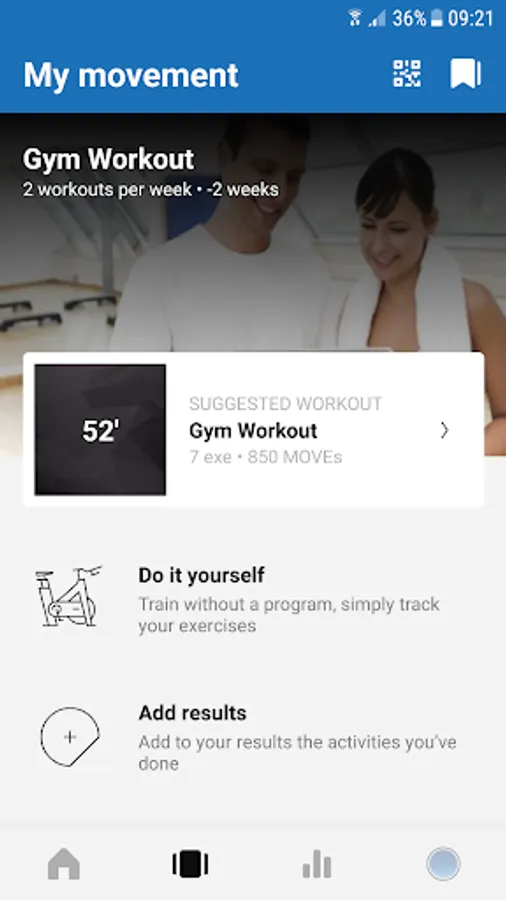 The quickest and easiest way is to collect the MOVEs directly on the Technogym machines. Log in to the devices with your account and train with the best training programs. With the app you can view your training program, the details of the exercises and videos directly. Scores are automatically updated during your