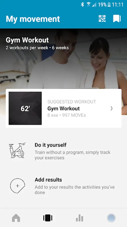 Een virtuele coach die u begeleidt tijdens uw training: Kies eenvoudig de training die u wilt doen in de Mijn beweging pagina en laat de app u begeleiden tijdens uw training. De app gaat automatisch naar de volgende oefening en geeft de mogelijkheid om uw training een waardering te geven en een volgende training in te plannen.