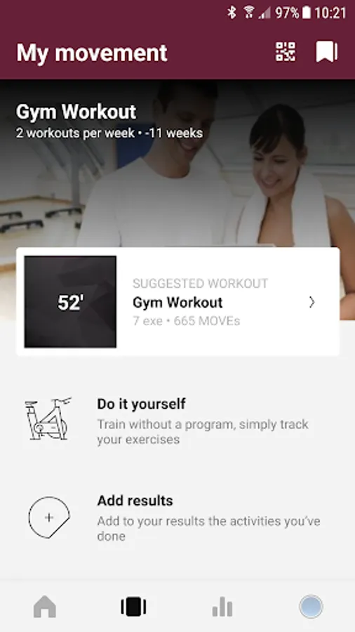 - Training: Receive your personalized and complete training program including cardio, strength exercises, group lessons and other activities; you have access to all exercises and instructional videos; you keep track of your personal results automatically by logging into mywellness on the device itself, wherever you are in the world.