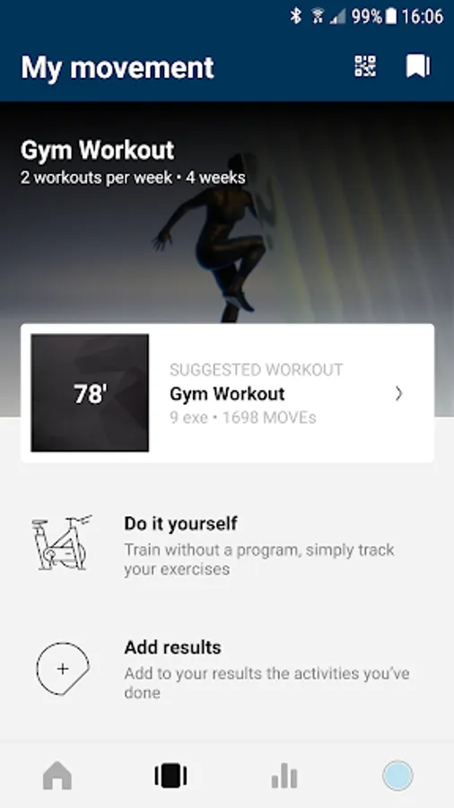 The quickest and easiest way is to collect the MOVEs directly on the Technogym machines. Log in to the devices with your account and train with the best training programs. With the app you can view your training program, the details of the exercises and videos directly. Results are automatically saved during your training session.