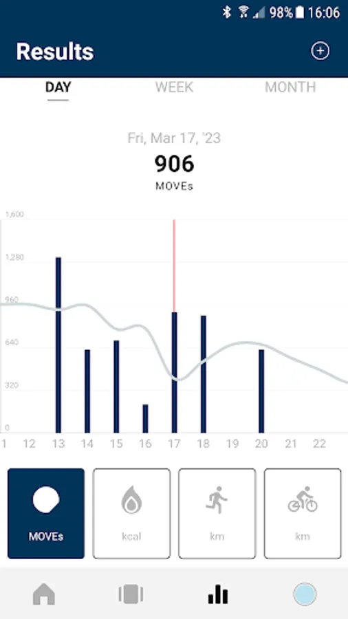 Start exercising with the MYGYM Coach app, collect MOVEs (the Technogym unit that measures movements) and get more active every day. For example, a low-intensity run of about 10 minutes translates to about 120 MOVEs.
