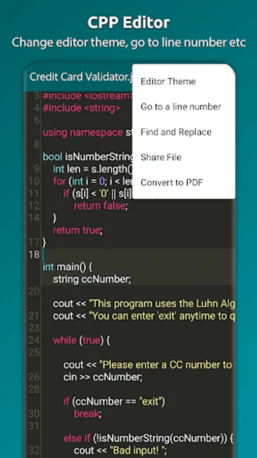 CPP Viewer and CPP Editor is a sophisticated tool that enables programmers to easily input and edit C++ code on any device, share it, and convert CPP to PDF. The best part? It's free to download.