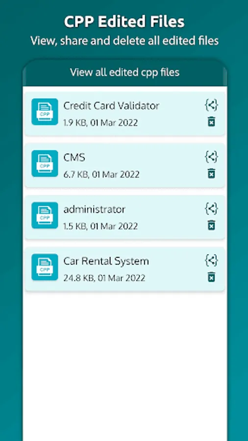 Cpp Reader is an easy-to-use and simple editor for CPP (C++ Programming Language) files. With Cpp Reader, you can view any CPP files easily, copy CPP code easily to clipboard, share code on any social media, 50+ editor themes and more.