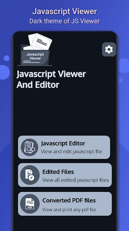 JavaScript file opener is a fast, lightweight and user-friendly JavaScript file viewer. It converts Javascript to PDF files and provide PDF viewer without installation. You can open any pdf file on your device storage. It is also a great tool that can improve your productivity.