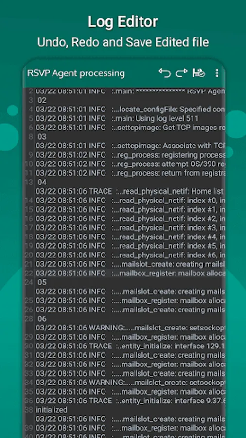 Log Viewer is the perfect solution for viewing and editing log files on your phone. You can edit your log files with a user-friendly interface, make changes to the text and save them easily. The Log reader is a perfect solution for all of your log viewing and editing needs!