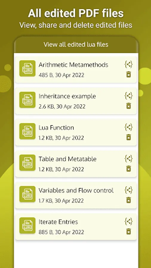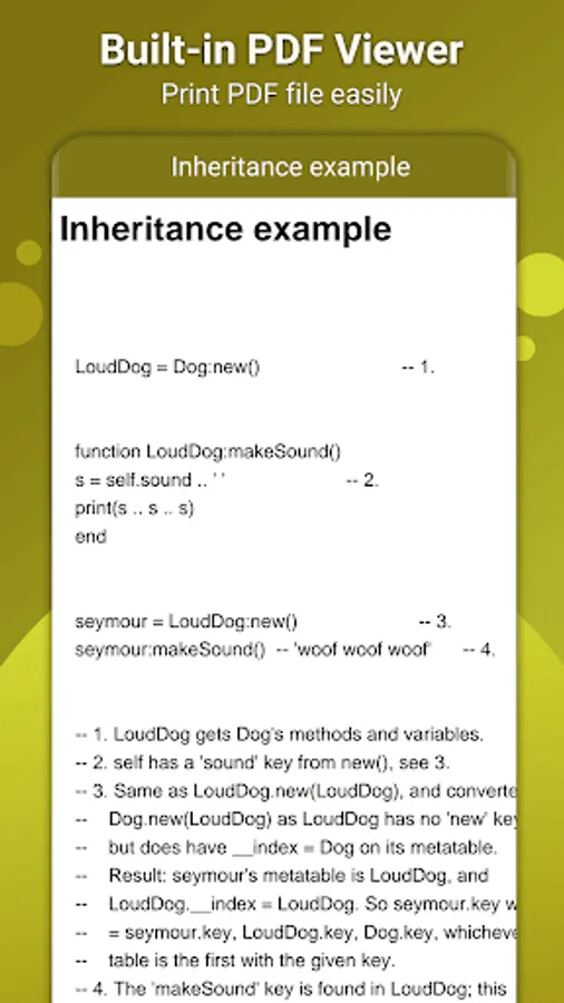 Lua Viewer is a fast, lightweight, and easy to use reader application that you can use to read and convert any lua to pdf files on your device with no code loss. You can directly print pdf file. You can also use the app to view pdf files saved in your device. All edited files of lua viewer are saved in device and are viewed within the app to open it directly within editor.