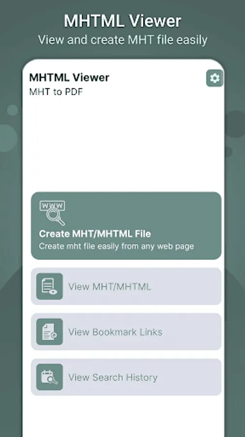 MHTML file opener and MHT viewer is a free app through which you will read any MHT file and also share it on any social platform easily. MHTML reader app keep history of all visited web pages. You can also bookmark any web page link and open any bookmark link easily within the app.
