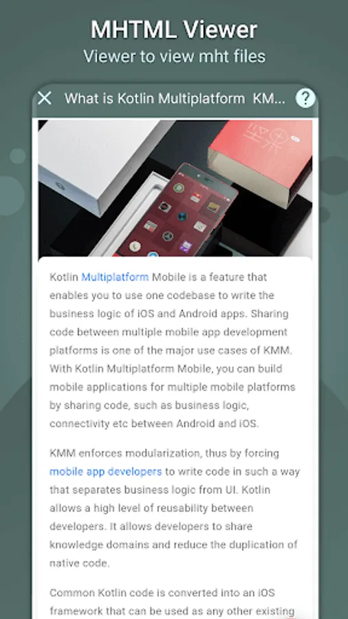 We have all been there before - we find an article that looks interesting but we don't have time to read it properly and then we lose it. It can be frustrating, especially if we really wanted to read the article in the first place. But there is no worry, Mhtml file viewer allows you to save articles and access them later, even if you're offline. This way, you can be sure to read the article when you have the time, and you won't lose track of it.