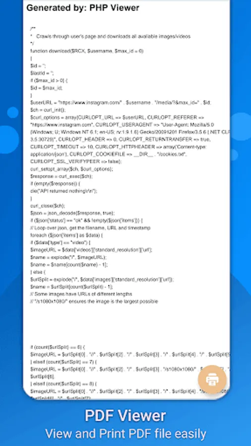 PHP editor has its own PDF viewer through which can view all converted php to pdf files and also view other pdf file which can pick from device storage easily. Php file reader is very useful for both developer and for those who want to learn php programming. You can view source code of any php file and do learn php programming.