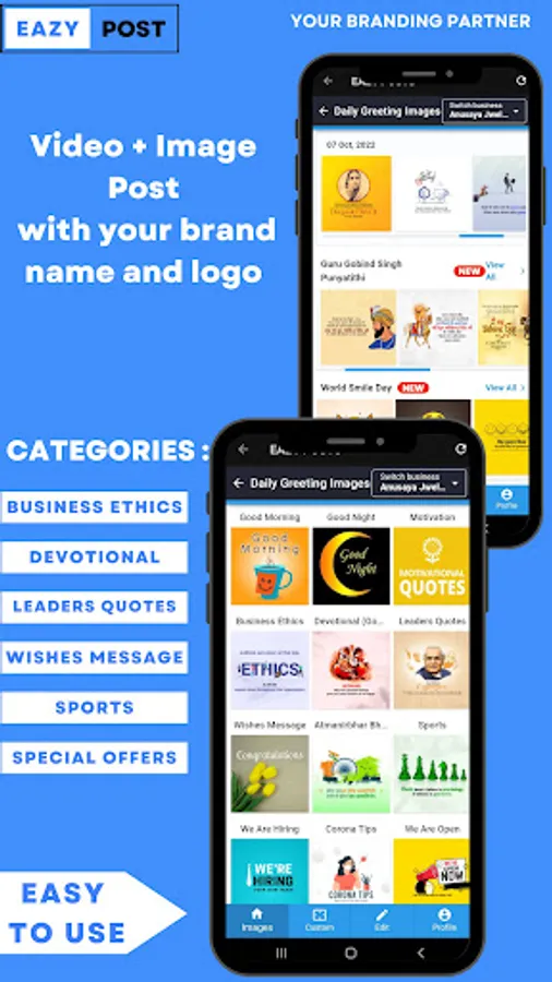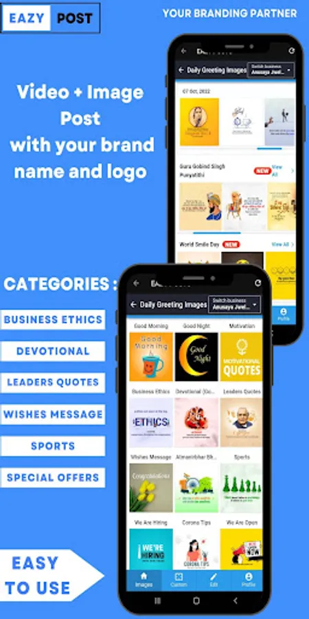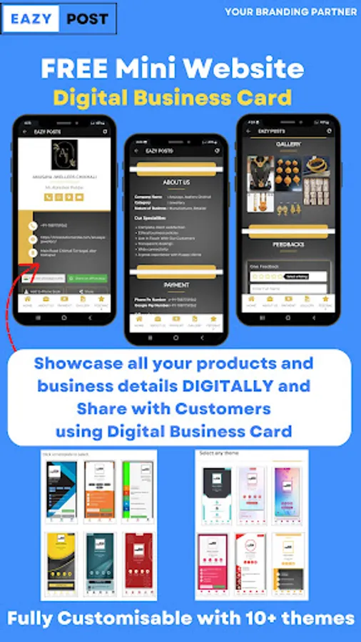 Eazy Post - The ultimate business solution to create high-quality digital business cards, social media images and videos, PDF ID cards and Musical Invitation Card. We provide easy-to-use tools that help you turn your business into a big brand with minimal time and effort.
