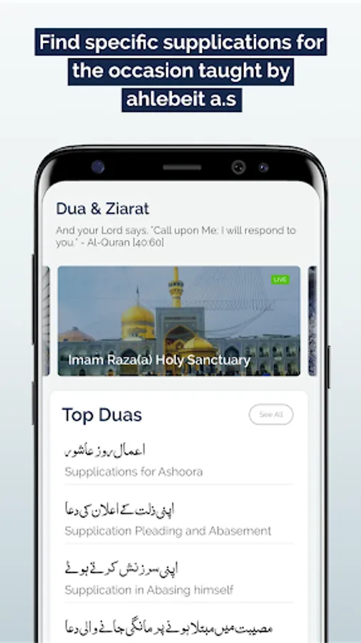 - Find a variety of supplications, ziaraat and munajaaat with their translations in one app.