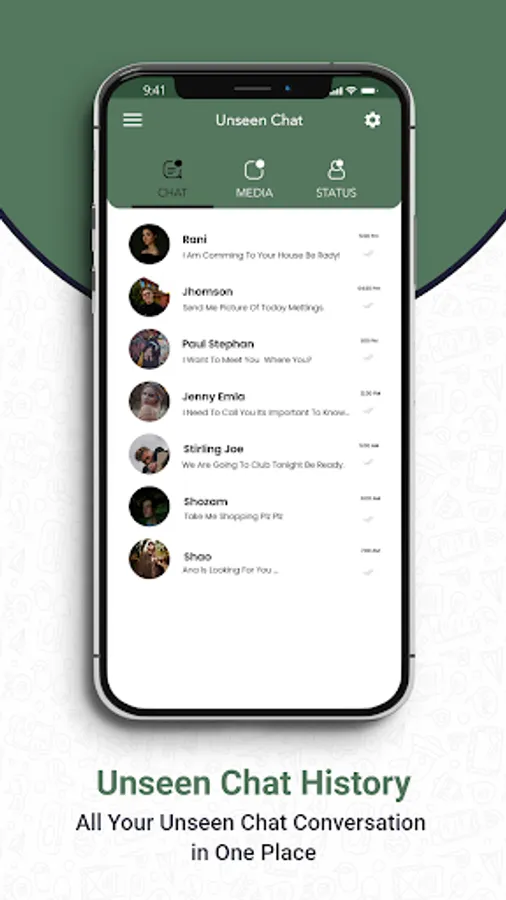 Unseen is not affiliated with or endorsed in any way by WhatsApp. Unseen is not a chat application so don't treat it as a chat application. You cant do chat using this application.