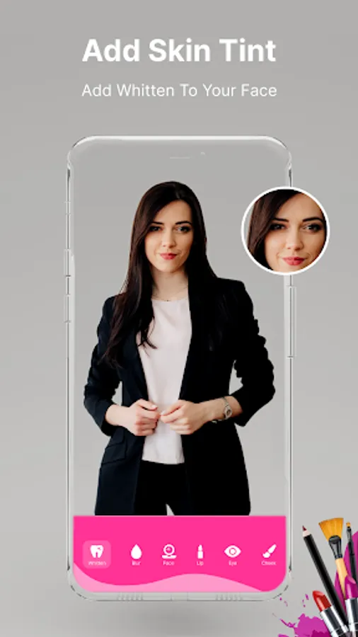 ★ Eye Filter allows you to do changes to your eyes like brighten, enlarge and other changes.