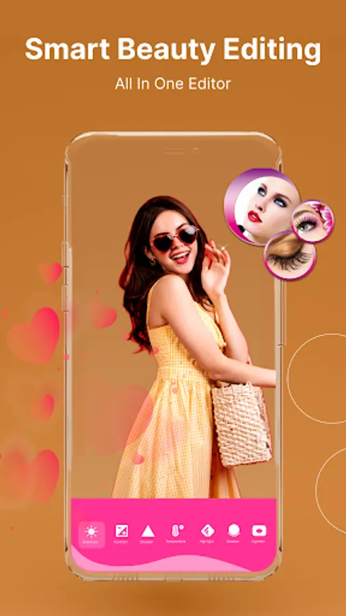 ★ In the Photo editor filter there are 7 editing options inside like contrast, sharpen, exposure, shadow, highlight and vignette option to edit the selfi in different styles.