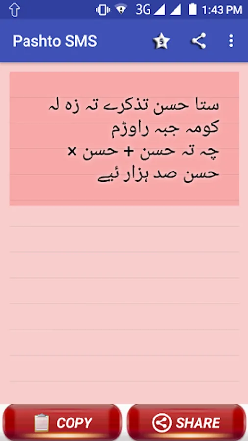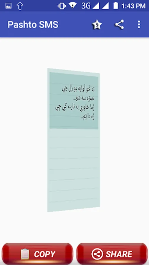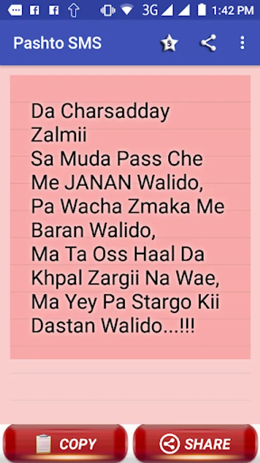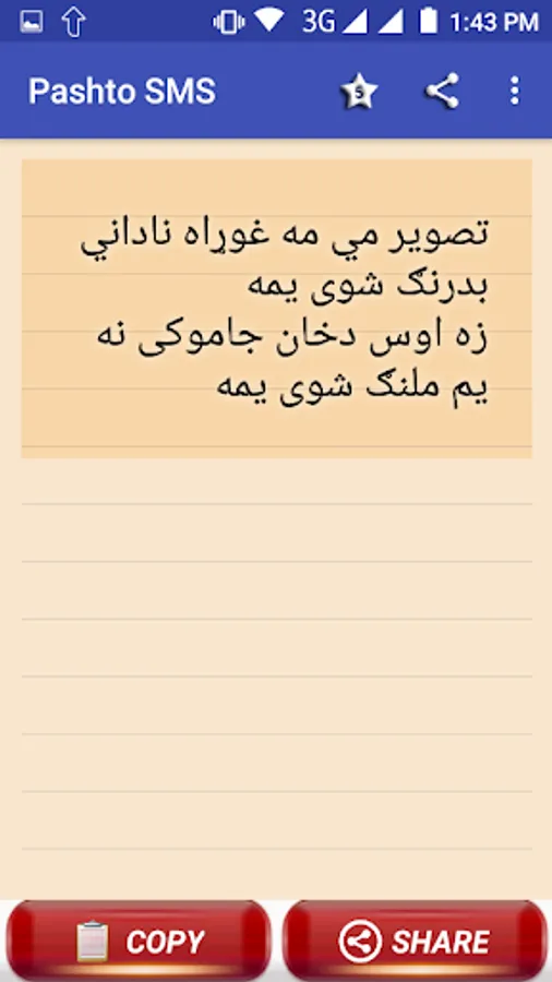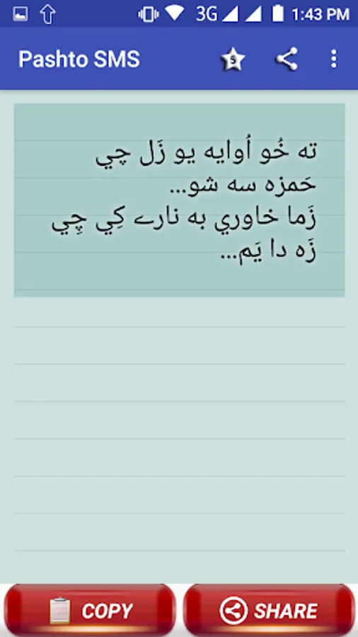 Colection of Pashto texts / SMS / Status messages. tanhani, sad, ansu and pyar muhabbat shairi sms in PASHTO. pukhto shairi. pashto hindi sms, pashto urdu sms, pashto english sms. pathan sms. pakhtoon sms and shairi. pashtoon sms shairi. pashto paighamona. share to ur love ones. Afghan shairi, sms and status.
