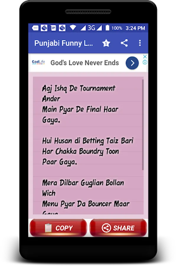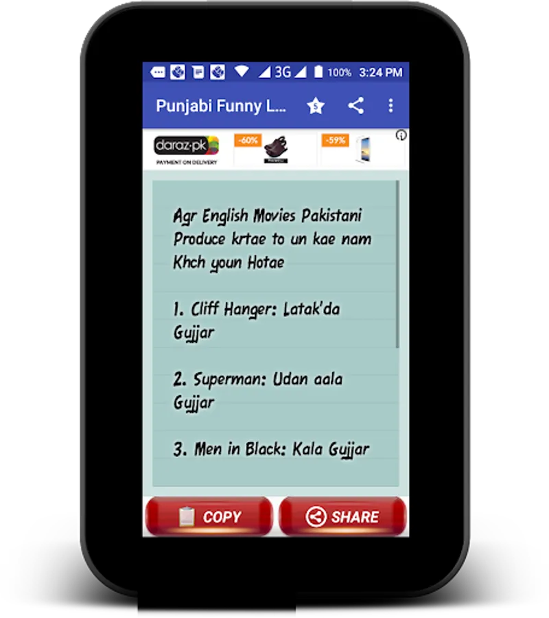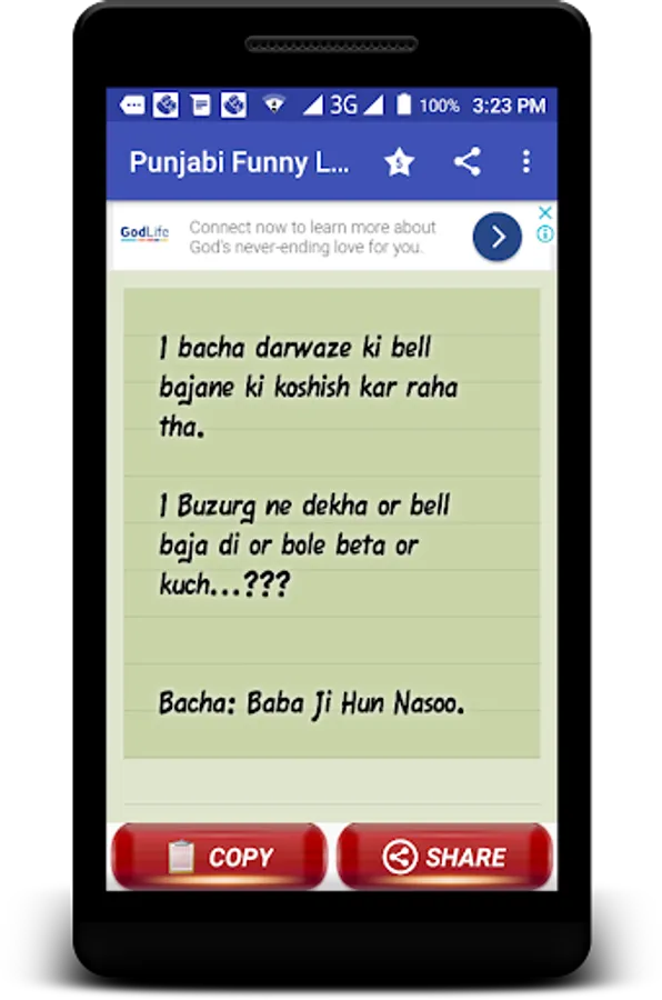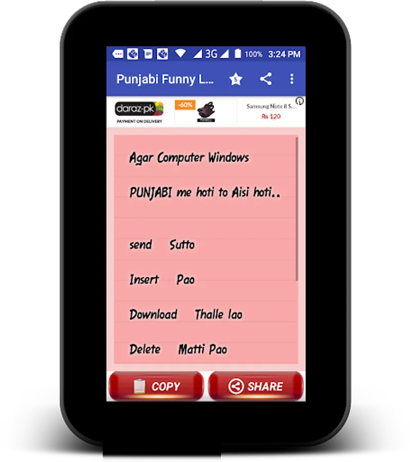 This app contains collection of punjabi funny latifay text messages. Sardaar lateefay sms Pathan jokes apna punjab sms santa banta jokes lateefy punjabi jokes dirty. Punjabi jokes in hindi and shayari punjabi chutkule, punjabi comedy download punjabi couple jokes double meaning jokes about marriage punjabi ganday lateefay, indian comics punjabi chutkule chacha chatra and many more.