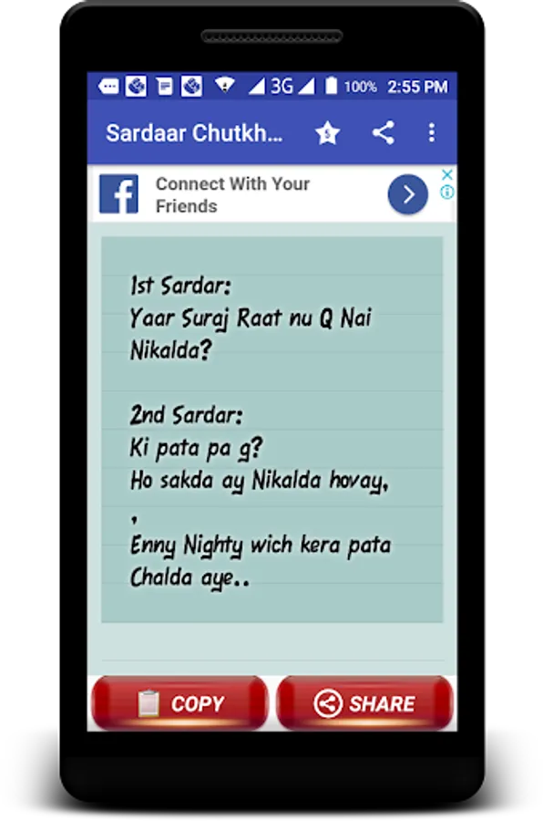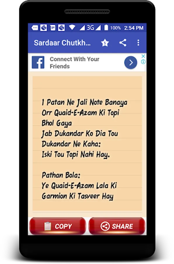 Collection of Sardar Chutkhulay & Pathan Lateefay Funny SMS in urdu / hindi language. Small chutkule (lateefay) messages related to santa banta sardaars and pathans. This app contains: