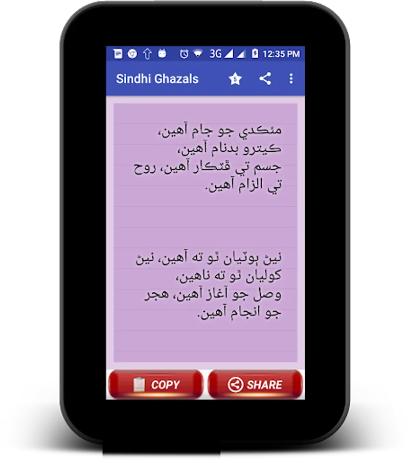Sindi shairi collection contains yar muhabbt shayari. shayri of famous sindh poets like Ibrahim Munshi, Baba Ghulam fareed, Shah Abdul Latif Bhittai, Sachal Sarmast and Sawan Fakir. Dard bhari ghazals. marsu marsu sindh na desu. Ali dam mast qalandar poetry. You can share as text and image, must download and share it to your friends.