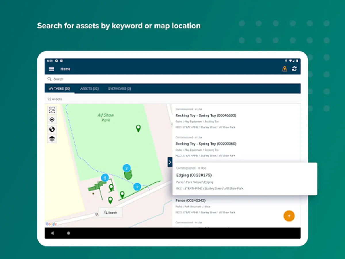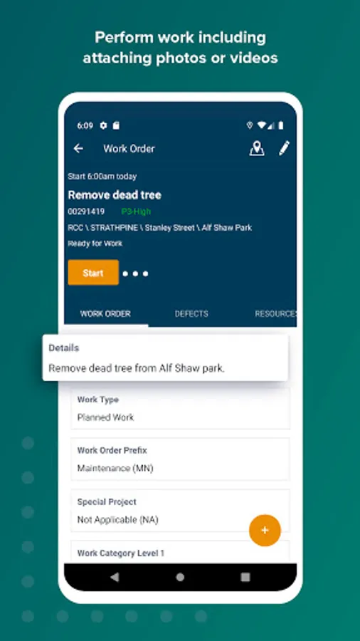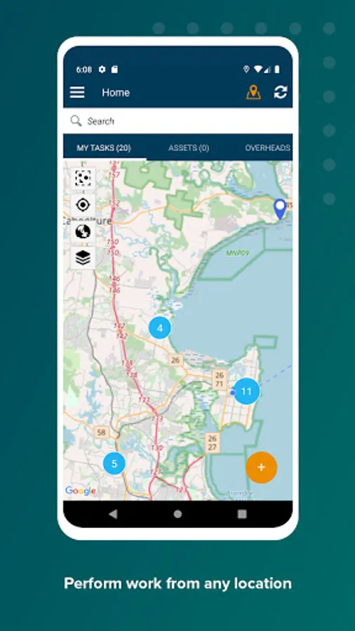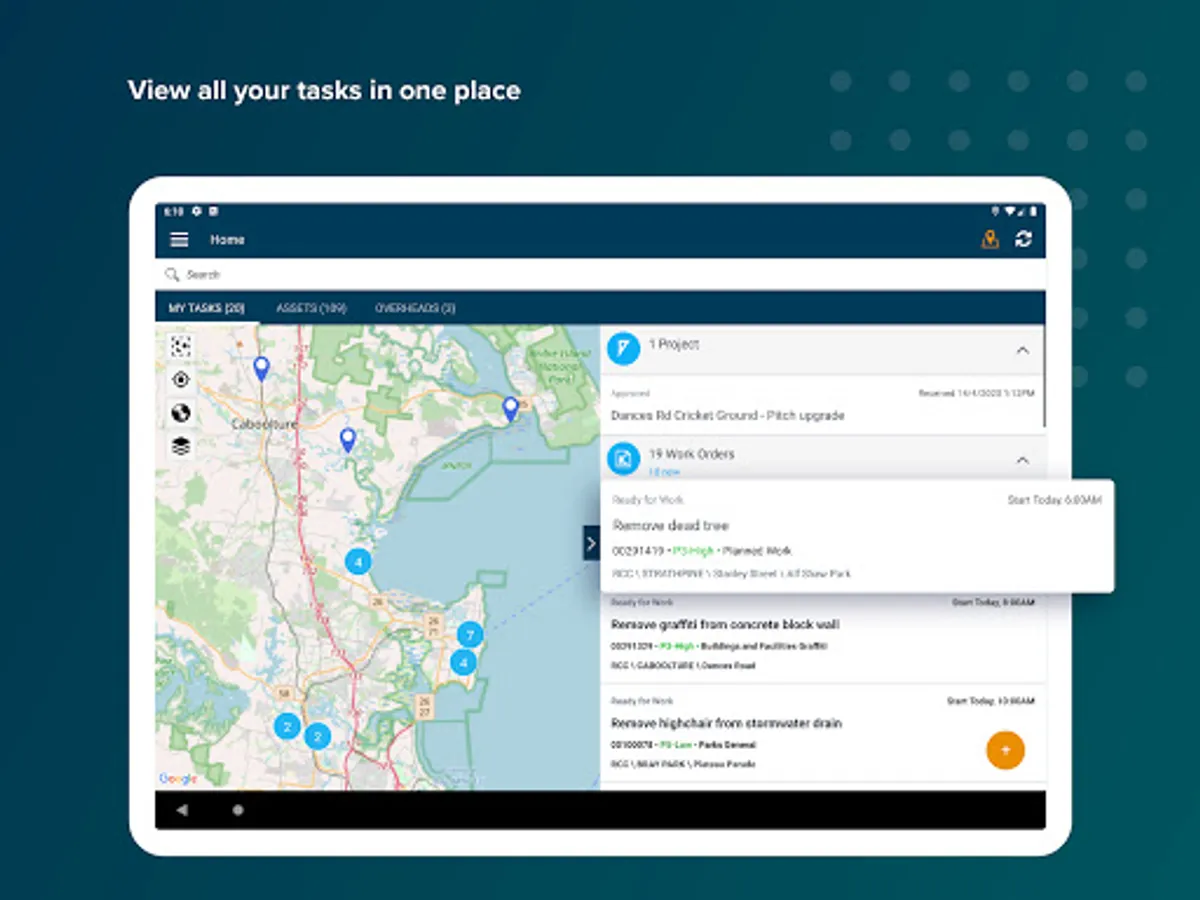 The app synchronises relevant data to your device to enable you to work offline. It also provides access to device and platform features to help you do your work.