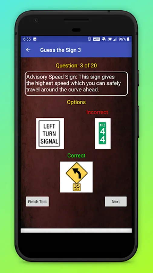 This app includes all the latest traffic/road signs (of the years 2017, 2018, 2019, 2020, 2021, and 2022.) which you need to know to be a better driver. If you already have a license, still, want to go through these signs to ensure that you know every sign. If you planning to give a driver's knowledge test or an actual drive test in the near future then this app will help you a lot because you will find numerous questions on signs in your driving test. 16 practice tests will help you to familiarize yourself with the actual test system.