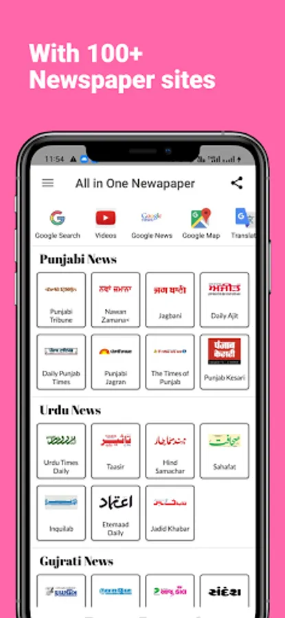 ~This has app Top 100+ newspapers of India in Regional Languages breaking news(Hindi, Marathi, Bangla, Gujrati, Tamil, Telugu, Malayalam, Odia, Punjabi).You can access all of these Newspapers app in one click from this app, no need to install all of these apps individually.