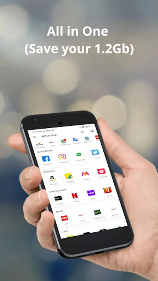 Access most popular applications including your social accounts or social networking apps via all apps in one without compromising phone memory, data, and cluttering your phone screen with apps.