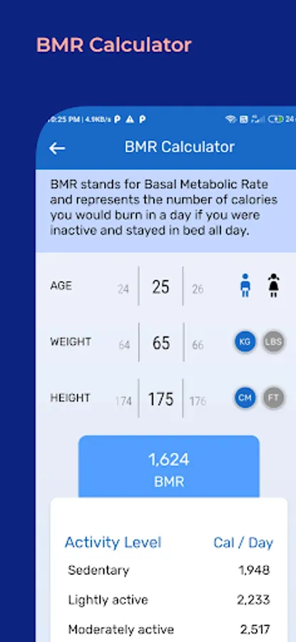 • View your BMI and BMR .