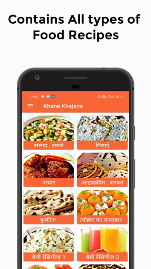 -Khana Khajan Recipes App have total 28 Categories which Includes