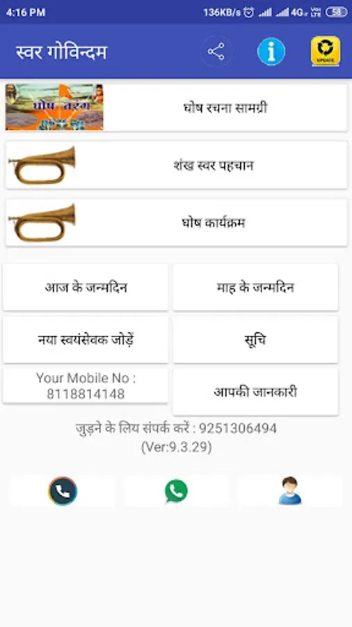 Swar Govindam App is based on the Ghosh theme of Rashtriya Swayamsevak Sangh. The volunteers who are interested in music perform the volunteer Ghosh.