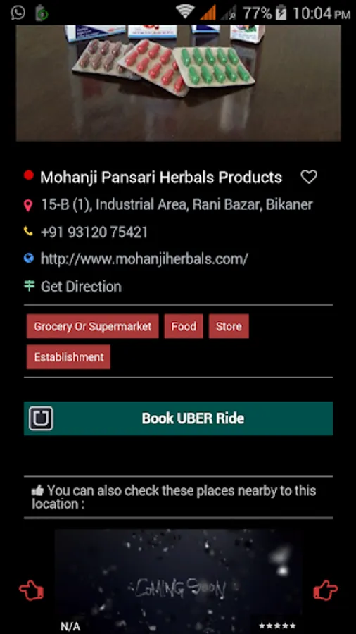 "My Places" mobile application lets you search all Places nearby your current geolocation. It have easy to use and simple User Interface and backed up with many useful options like marking any place as "Favourite" place so that you can access the place with just one click, You can also book an UBER ride to that place via this applications + there are lots of feature packed in this application.