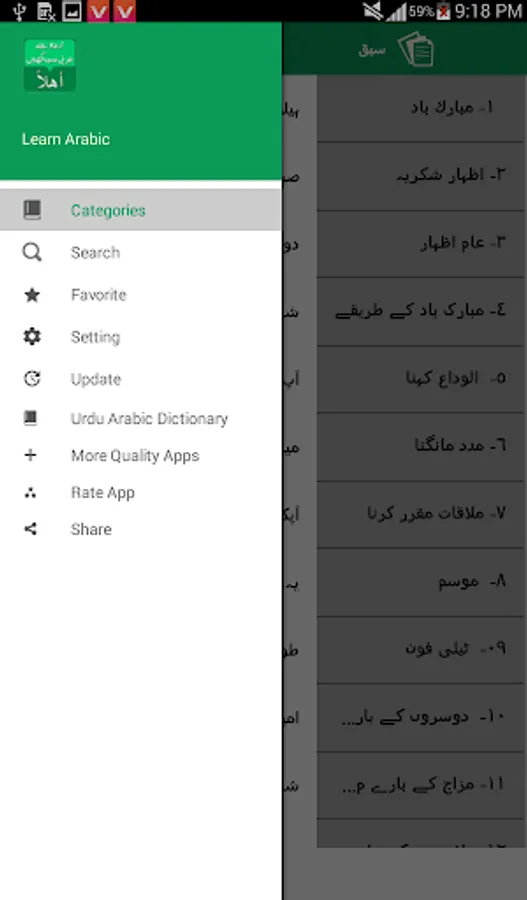 Now Arabic learning is no more difficult with this complete Arabic learning course which contain basic phrases required to learn Arabic, If you have a plan to go for Arab countries or if you want to fluently speak Arabic language than this is best Arabic learning application for you which teach you to Learn Arabic language from Urdu.