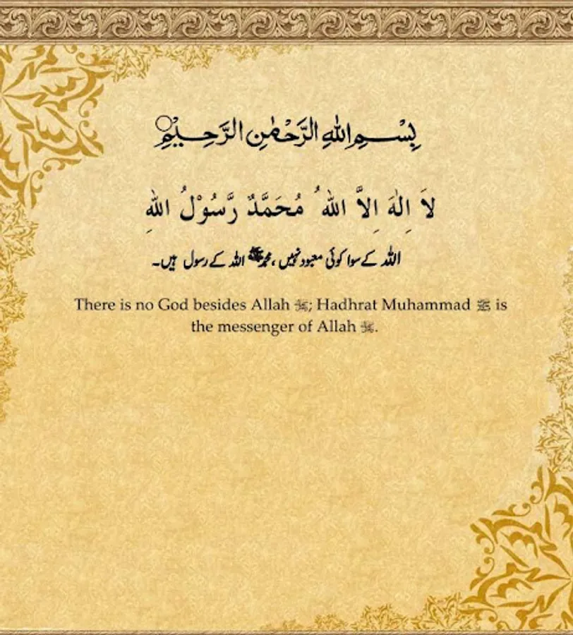 1) First Kalma Tayyab: Laa ilaaha illal Lahoo Mohammadur Rasool Ullah
