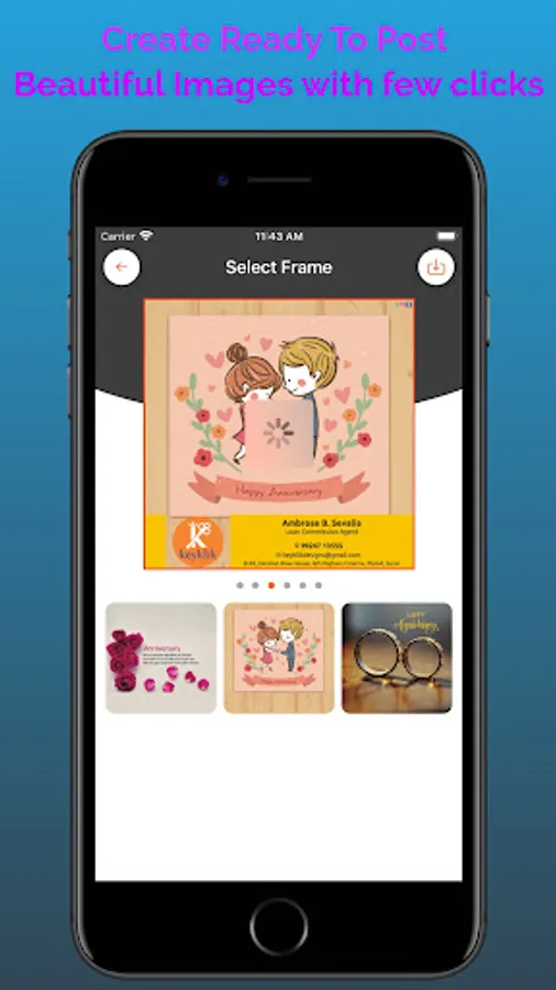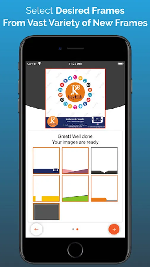 - Select best looking custom frames with your details preview on it to get started.