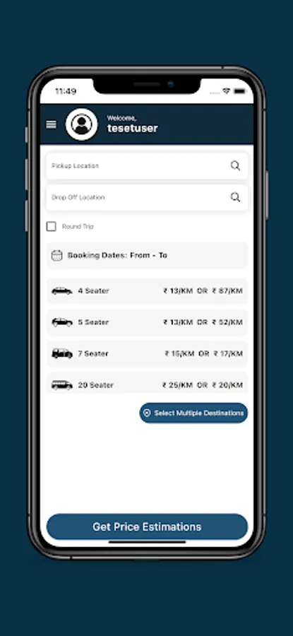 => Select vehicle category from various vehicle categories (like 4-Seater, 5-Seater etc.) to see your fare estimations*.