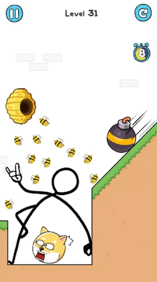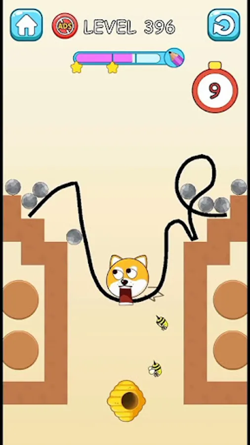 Protect My Dog 2 is a casual puzzle game. You draw lines with your fingers to create walls that protect the dog from attacks by bees in the hive. You need to protect the dog with the painted wall for 10 seconds during the attack of the bees, hold on and you will win the game. Use your brain to save the doge.