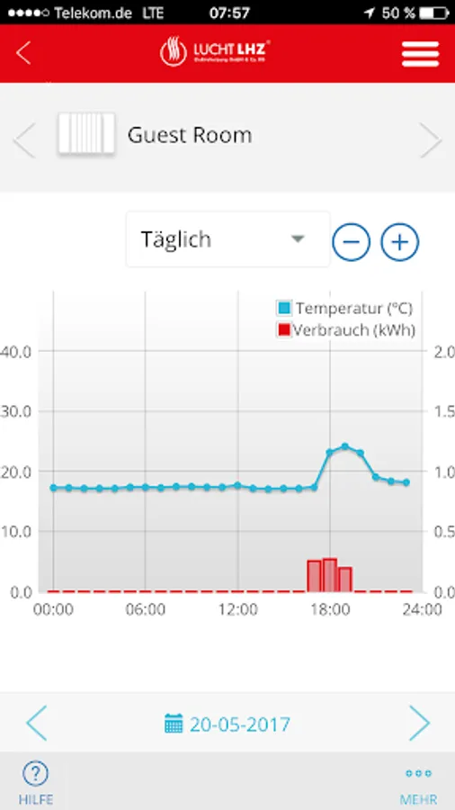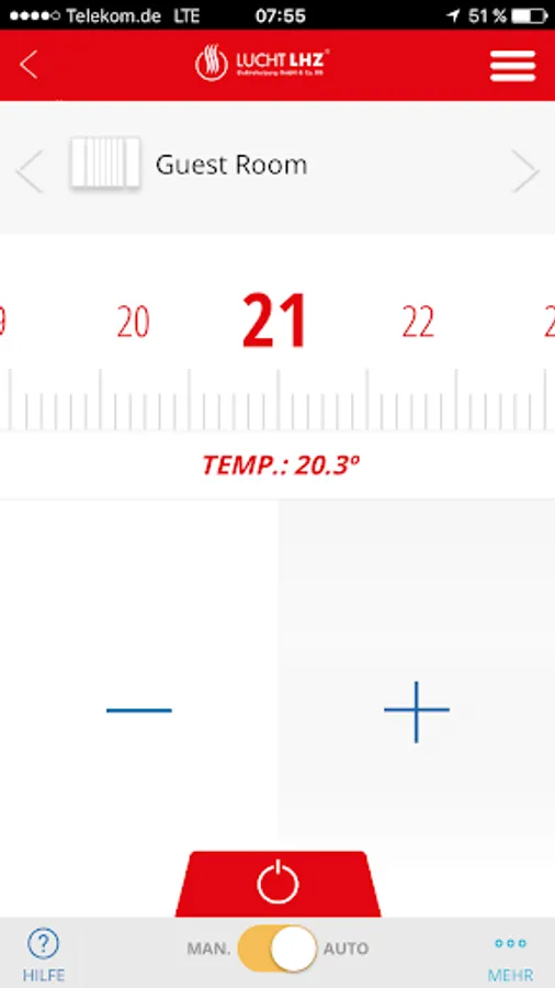 With this app, you can control your heaters intuitively. For each room can be individually set a temperature. A consumption overview and a temperature profile can be found in the history. An "out-of-house" function allows you to shut down all devices with a single command by a set temperature. The "Open Windows" function detects a suddenly open window.