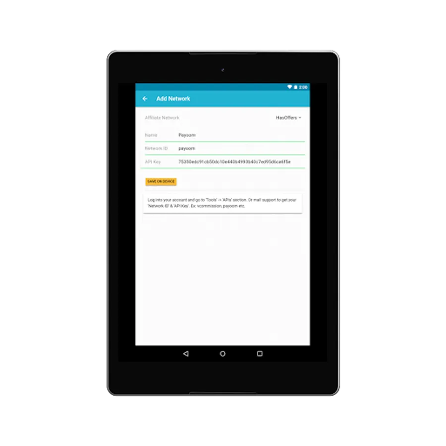 When you access any affiliate or ad network via API key, those keys will be saved on your device and won't be saved on any remote server. All your data is yours. We do not access it, nor do we sell it. Your privacy is our priority. Your data is yours and we never access it. We can't even look at it, as its on your device.