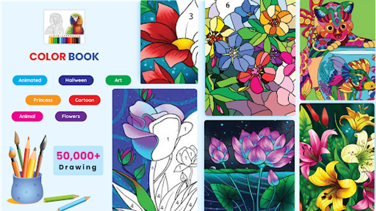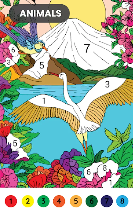 - Great variety of themed categories: cute animals, characters, beautiful flowers, stunning places and many more different themes for you to color by numbers.