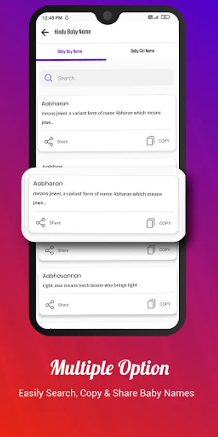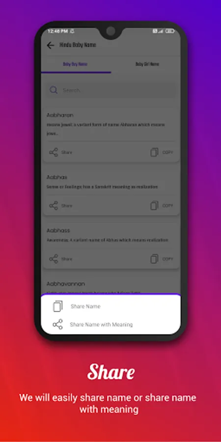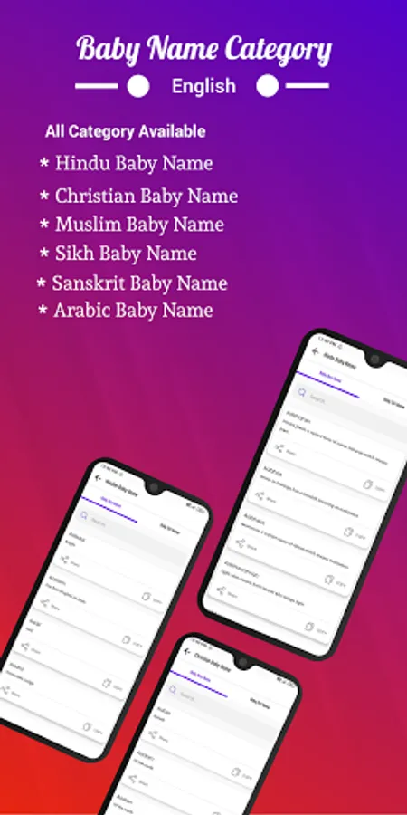 App has a collection All religion baby boy and baby girls name along with their meanings.
