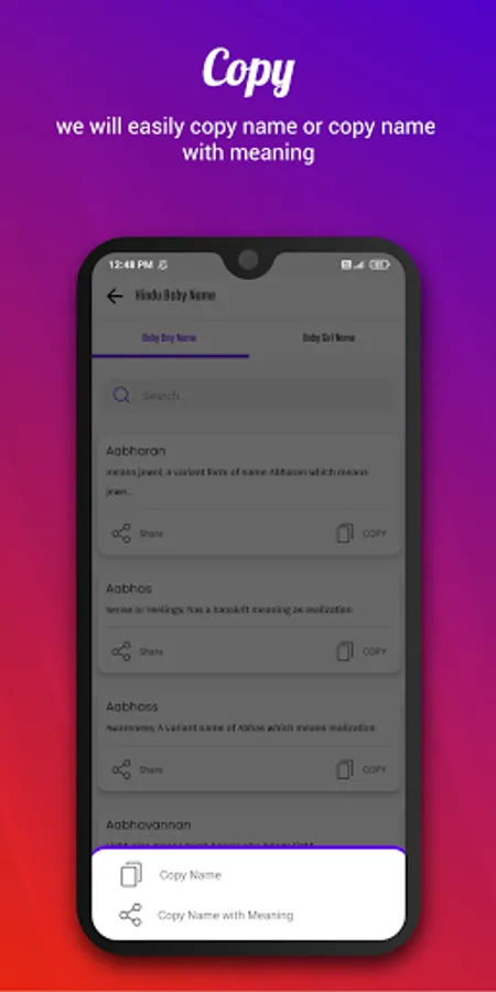 Baby Names With Meanings - New Born Baby Names android app is helpful for everyone who is finding unique girl names & unique boy names with name meanings. This app contains more than 1,00,000+ baby name list with their meaning.