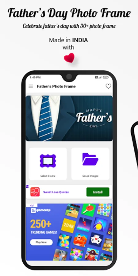 Latest Father's photo frames App with Nice and Attractive design. you can use this app online or offline. weekly new Father's Day frames updated.